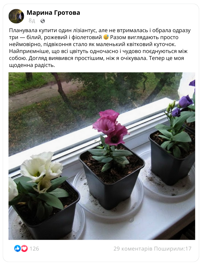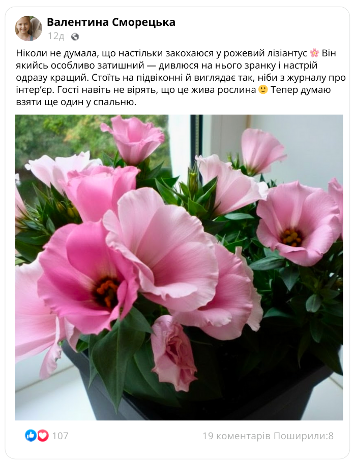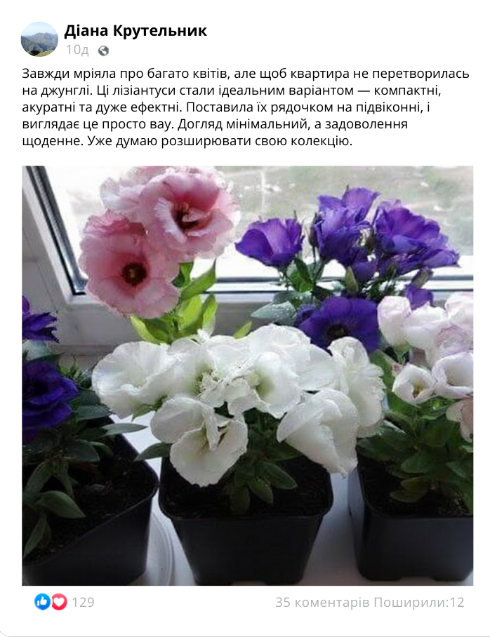 Що говорять ті, хто вже обрав лізіантус «Адалін»